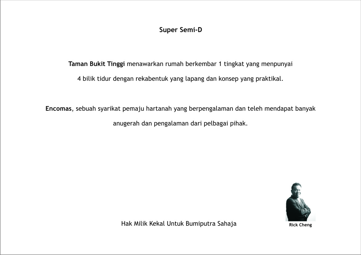 Taman Bukit Tinggi offers single-storey detached house that comes with 4 bedrooms and a spacious and practical design concepts. Encomas, a leading real estate developer with many years of experience and has received many awards from various quarters.