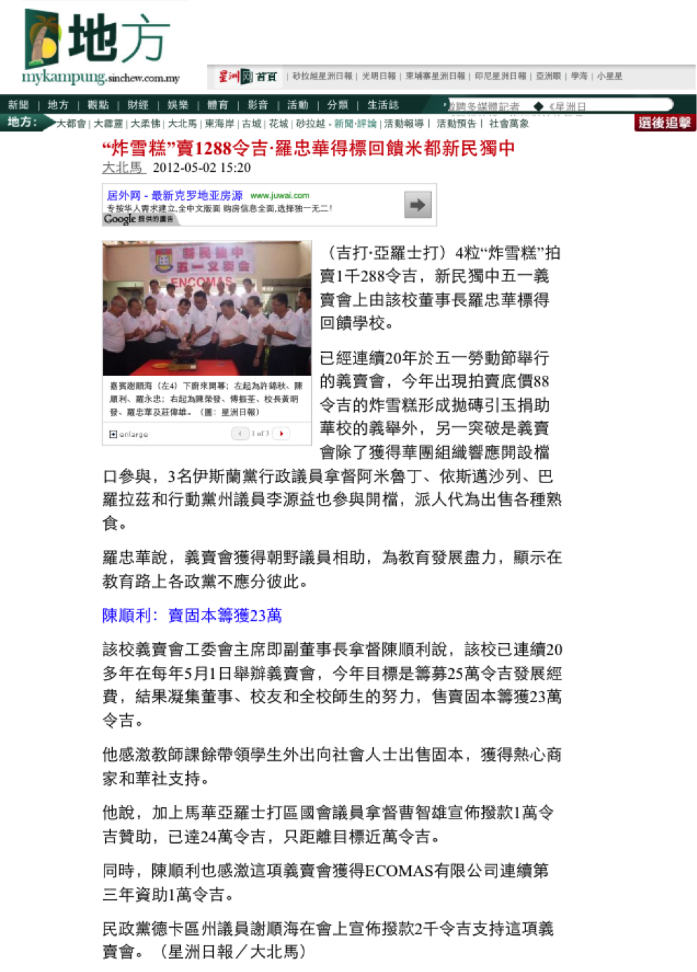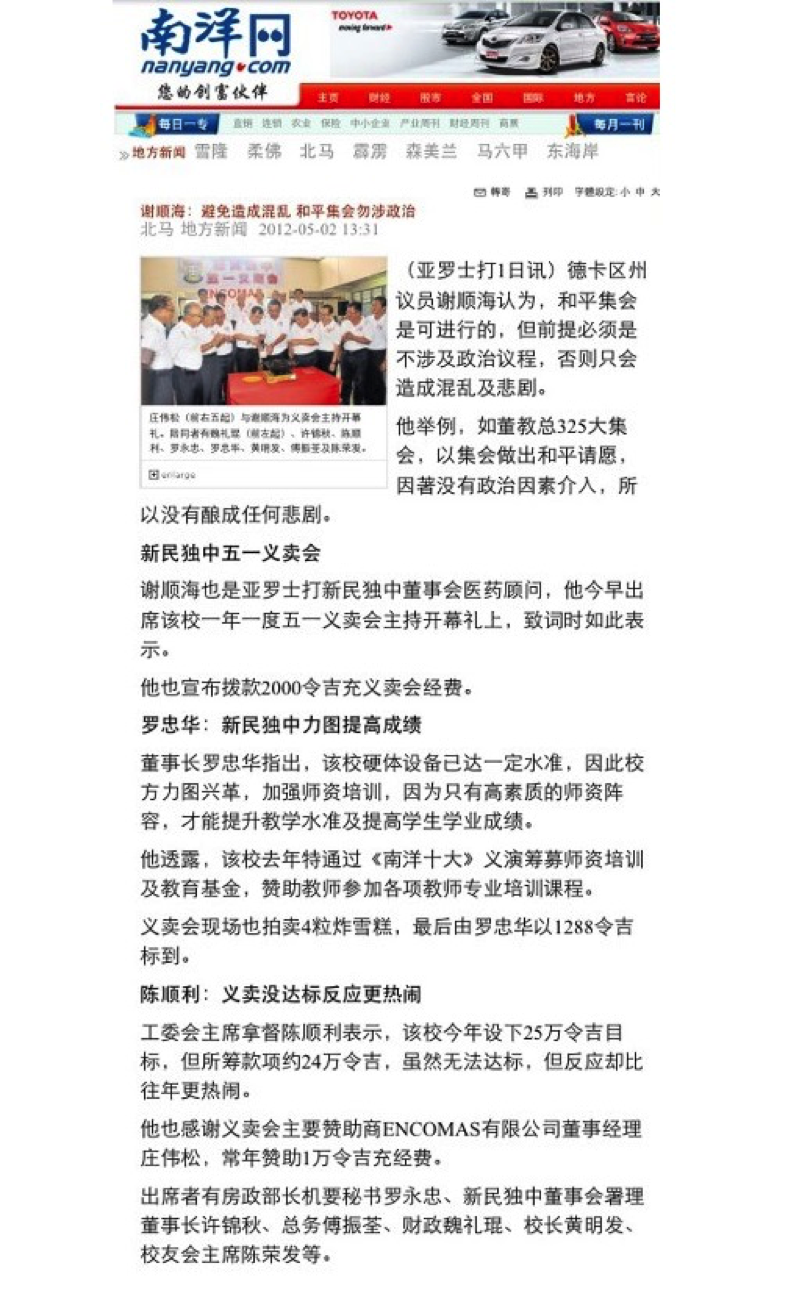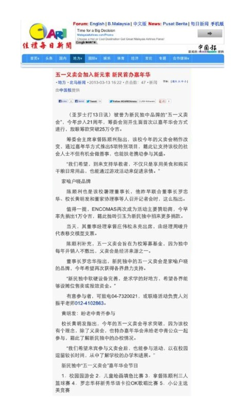 Encomas is very proud to sponsor the Charity Sales to raise fund for Sin Min Private School in Alor Setar since 2010. With the teamwork and generosity from the students, parents, local societies and many organizations, the charity manage to raise on average RM250,000.00 for the Sin Min Private School Fund.